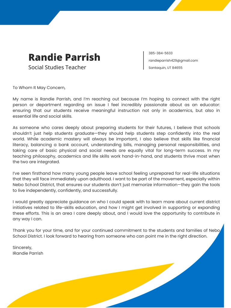 This will connect to the Leader standard because it allows me to take my influence as an educator and to help shape and influence the quality of education that my students are getting. This will help my future as an educator because it will allow me to not just be an educator but it will allow me to be a leader, be involved and incorporated in the world of education. To show evidence of this I will include some of Nebo School Districts personnel that I could reach out to in the future about helping to improve the social and life skills that are being taught in our schools.